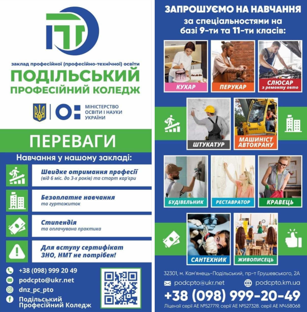 Заклад професійної (професійно-технічної) освіти    “ПОДІЛЬСЬКИЙ  ПРОФЕСІЙНИЙ КОЛЕДЖ”
